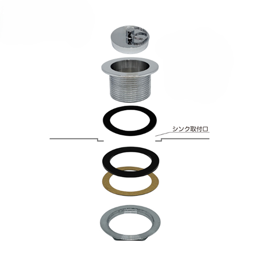 | 材質 | 本体・フタ:真鍮(クロームメッキ) 締付ナット:亜鉛ダイキャスト |