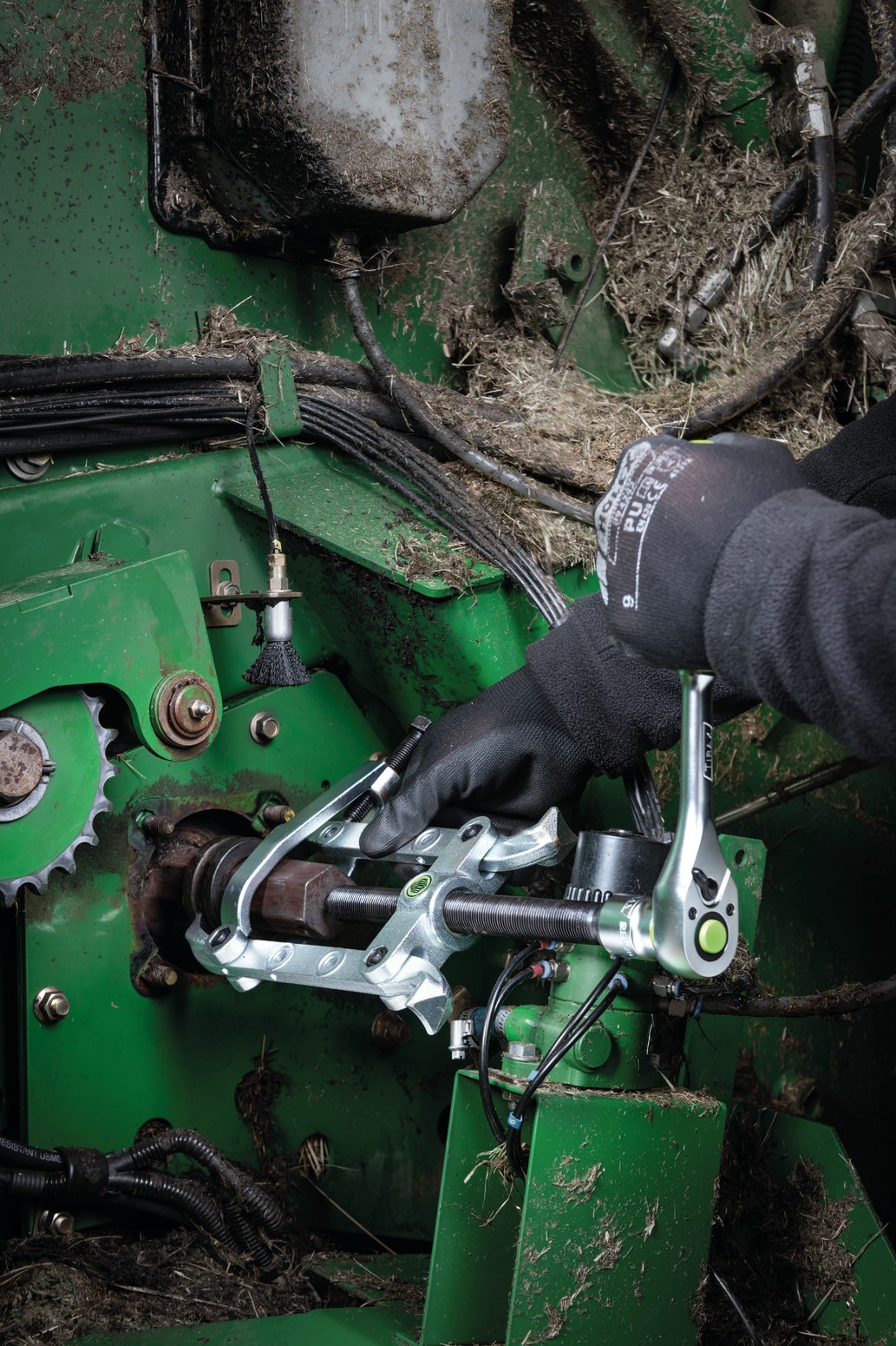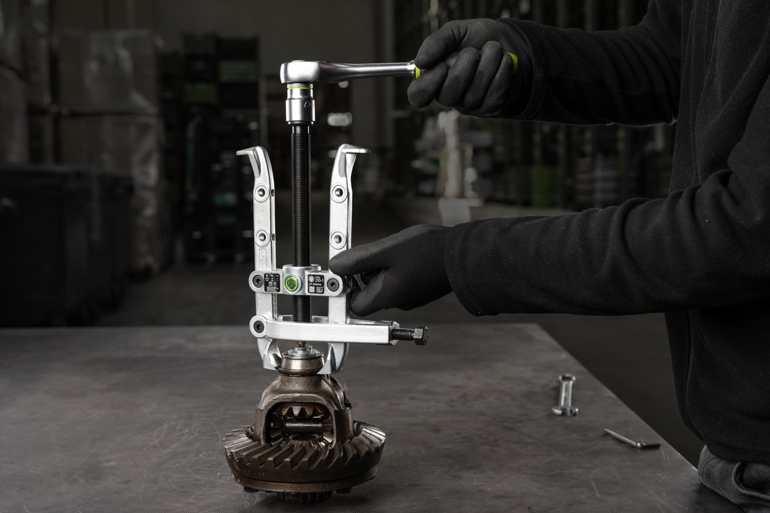 | アームの爪は、ナイフのように鋭くできているので固着した部品をとりはずすのに便利で、ベアリング、ベアリングレース、ピニオンなどに使われます。 | |||