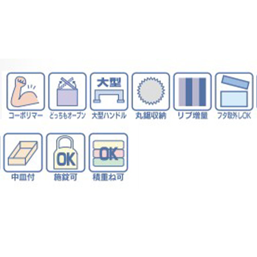 | 材質 | 高耐衝撃性コーポリマー | 南京錠取付穴 | 18(W)×6(D)mm |