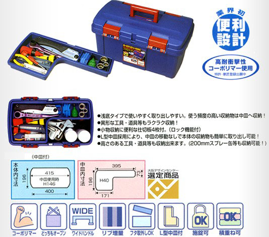 品名 : 460x265x233mm 工具箱(中皿付/青)