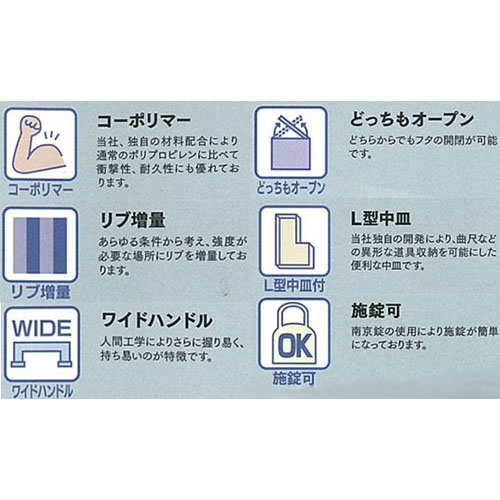 | オールマイティーに収納でき、作業工具の収納にもジャストサイズ | |||