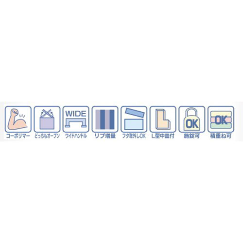 | 南京錠取付穴 | サイズ:19×7mm、数量:2箇所 | 付属品 | L型中皿、中皿用仕切板(4枚) |