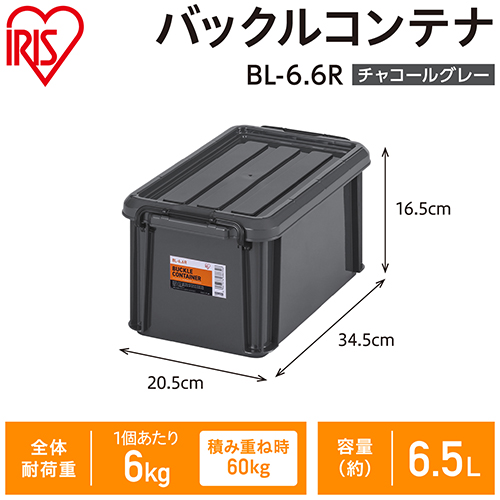 | プラスチック製バックルの衝撃に強いフタ付きコンテナです。 | |||