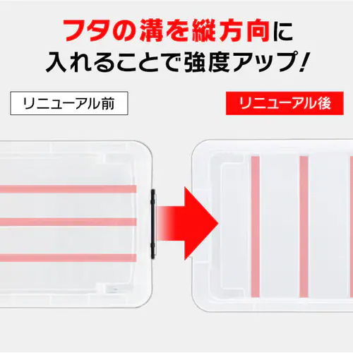 | 【仕様変更のお知らせ】 フタの溝が縦方向から横方向(短辺方向)となり、強度がアップ致しました。 |