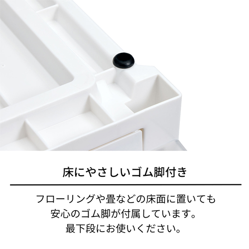 | 材質 | 天板・外枠・引出し:ポリプロピレン 前パネル・前倒れ防止用ジョイント具:スチロール樹脂 ゴム脚:エラストマー 補強板:アルミ |