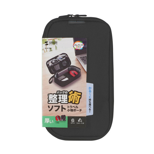 モバイルバッテリーや充電器などの小物をまとめて、すっきり整理収納できるコンパクトポーチ