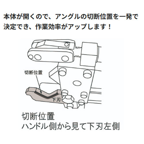 | 強力倍力機構の為、手動でアングルを楽々切断出来ます。 | |||