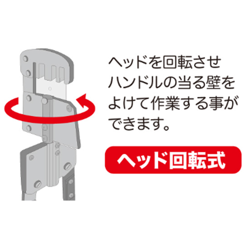 | ヘッドを回転させ、ハンドルの当たる壁をよけて作業することができます。 | |||
