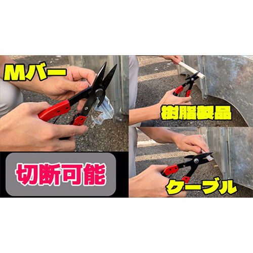 | 切断能力 | ・銅板(軟鉄):0.5mm以下(野縁受けの切断不可) ・樹脂製品:1.0mm以下 ・VVF線:2.0×3芯 ・VCT線:3.5×3芯 |