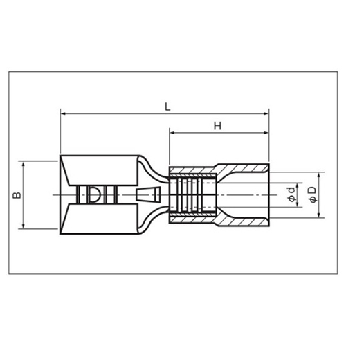 | 全長 | 21.0mm | 材質 | 接続子:黄銅(電気すずめっき) スリーブ:無酸素銅管(電気すずめっき) 絶縁体:ポリ塩化ビニル |