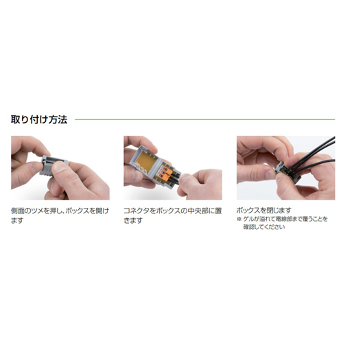 | あとづけで簡単に防水・防滴対応、ゲルで完全密封します。 | |||