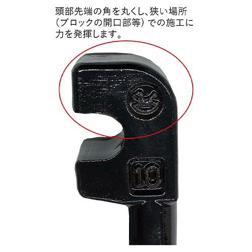 | 頭部先端の角を丸くし、狭い場所(ブロックの開口部等)での施工がしやすく、作業効率もアップします。 | |||
