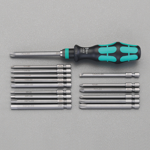 | ビット仕様 | ・六角シャンク:1/4” ・全長:89mm ・(+)ビット:#1・#2・#3 ・(-)ビット:1.0×5.5mm ・Hex-Plusビット:3・4・5・6mm ・トルクスビット(イジリ止付):T10・T15・T20・T25・T30 ・ポジドライブビット:#1・#2・#3 ・重量:(+)ビット:12・19・22g (-)ビット:16g トルクスビット(イジリ止付):11(T10、T15)・13(T20)・19(T25、T30)g ポジドライブビット:14・19・22g Hex-Plusビット:11・15・20・24g |