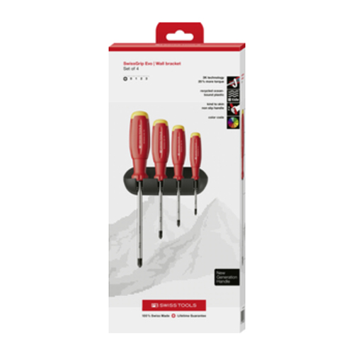 | 【SwissGrip Evoの特長】 ・従来の丸形グリップから、わずかに三角形に近い(トライアングル形状)に改良 ・グリップ形状により、握ったときに手のひらにしっかりフィットします。 ネジを回すためのトルク伝達率が従来品より約25%も向上しています。 少ない力で、より確実にネジを締める・緩めることができます。 |