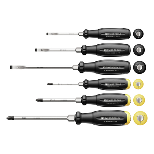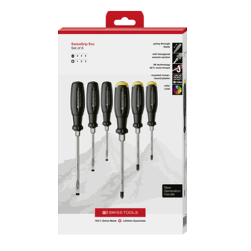 | 【SwissGrip Evoの特長】 ・従来の丸形グリップから、わずかに三角形に近い(トライアングル形状)に改良 ・グリップ形状により、握ったときに手のひらにしっかりフィットします。 ネジを回すためのトルク伝達率が従来品より約25%も向上しています。 少ない力で、より確実にネジを締める・緩めることができます。 |