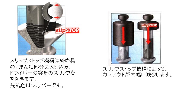 先端にレーザー処理を施している為、先端がネジ頭から滑るのを防ぎます