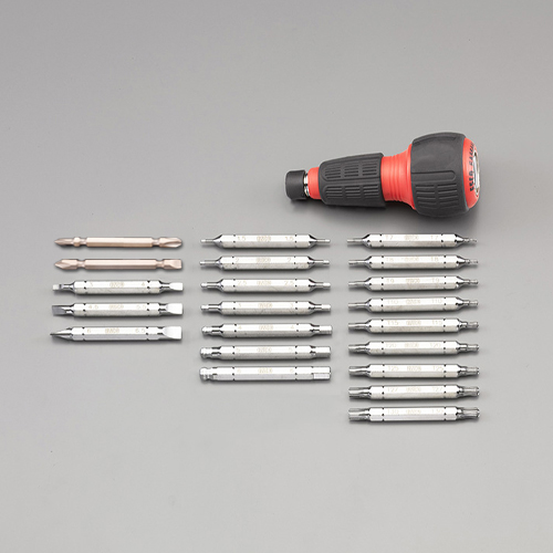 | メーカー | ESCOオリジナル | セット内容 | ・ラチェットドライバーハンドル ・(-)ビット×3本 ・(+)ビット×1本 ・(+)(-)ビット×1本 ・Hexビット×7本 ・ヘクスローブビット×9本 |