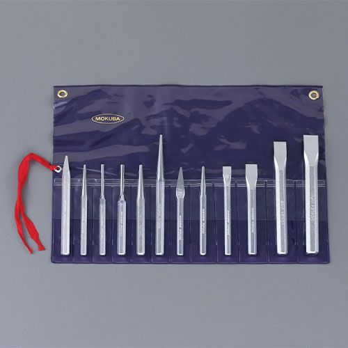 | 【セット内容】 ・平タガネ(刃幅:13mm、全長:150mm) ・平タガネ(刃幅:16mm、全長:153mm) ・平タガネ(刃幅:19mm、全長:190mm) ・平タガネ(刃幅:22mm、全長:200mm) ・エボシタガネ(刃幅:5mm、全長:148mm) ・センターポンチ(先端径:4mm、全長:150mm) ・ピンポンチ(先端径:5mm、全長:151mm) ・ピンポンチ(先端径:6mm、全長:151mm) ・テーパーピンポンチ(先端径:3mm、全長:151mm) ・テーパーピンポンチ(先端径:5mm、全長:151mm) ・ロングテーパーピンポンチ(先端径:4mm、全長:202mm) ・チス(先端四角:13mm、全長:166mm) |