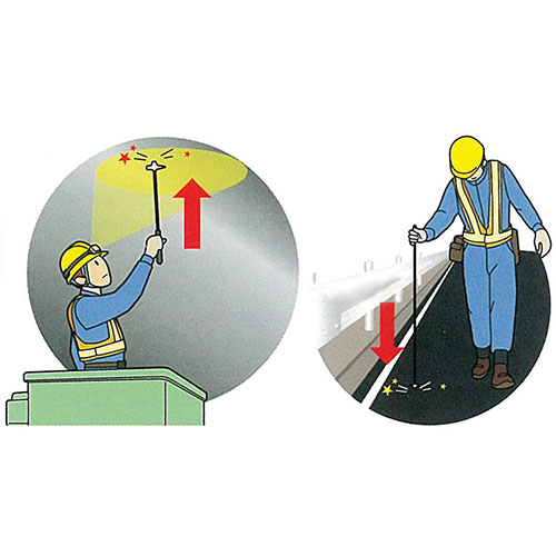 | 3点で打診できるヘッド形状でトンネル・橋梁・道路舗装・鉄道車両の点検作業に最適です。 | |||