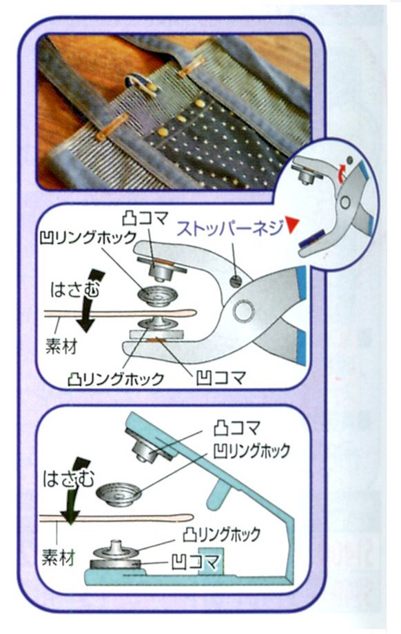 | 厚みのあるジーンズ生地にもしっかり固定でき、ワンポイントアクセントにも便利です。 | |||