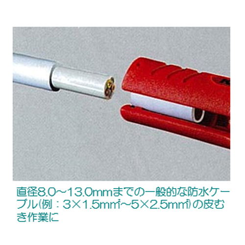 | 直径8.0~13.0mmまでの一般的な防水ケーブル(例:3×1.5m㎡~5×2.5m㎡)の皮むき作業に | |||