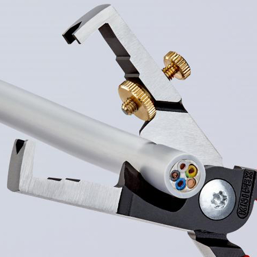 | 絶縁被覆を一定の長さ(11mmおよび16mm)で剥ぎ取るため、目で見て分かるようにジョーに段がつけられています | |||