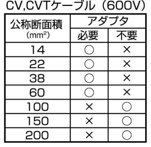 | ※断面積14~60mmのケーブルに使用する際は、付属のアダプターを取り付けてください。 | |||