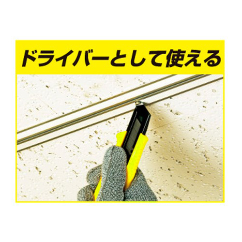 | ドライバーと同等の硬度なので、ネジを締めたりつく、こじるが可能になりカッター本体を多機能工具として使用できます。 | |||