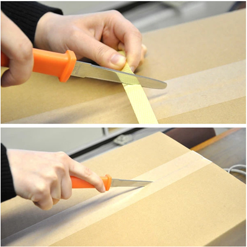 | 両側に付いたギザ刃で、梱包用のPPバンドも滑らずカットできる鋭い切れ味 | |||