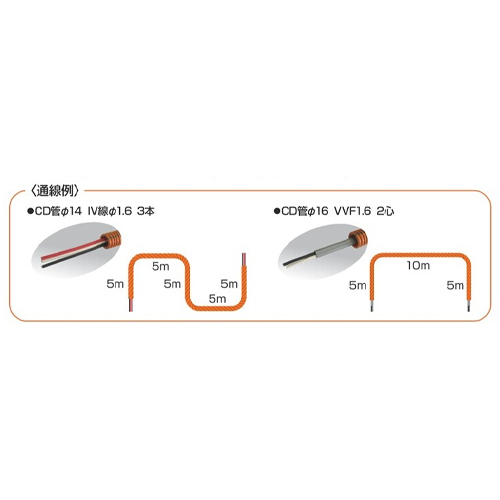 | <注意> ・よび線以外の用途には使用しないでください。 ・入線作業には、ロープ・ワイヤー等をご使用ください。 ・ペンチ等で掴んで引っ張らないでください。破損の原因になります。 ・周りの安全を確認し、メガネ・手袋等の保護具を着用してください。 |