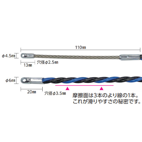 | スリムヘッド(φ4.5mm)で狭いすき間も滑らかに通線できます。 | |||