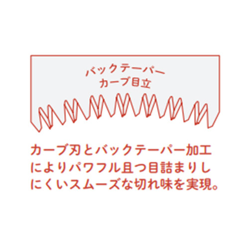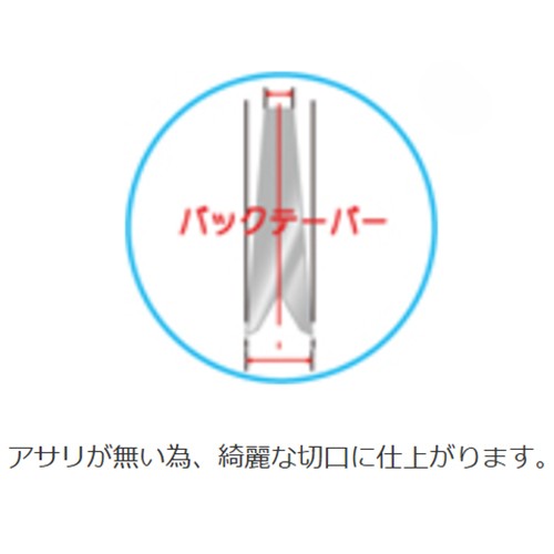 | アサリの無い刃の背をすいた『バックテーパー加工』により切口が綺麗、樹木を傷めずシャープに切落しします。(ボタン材の発生を防ぎます。) | |||