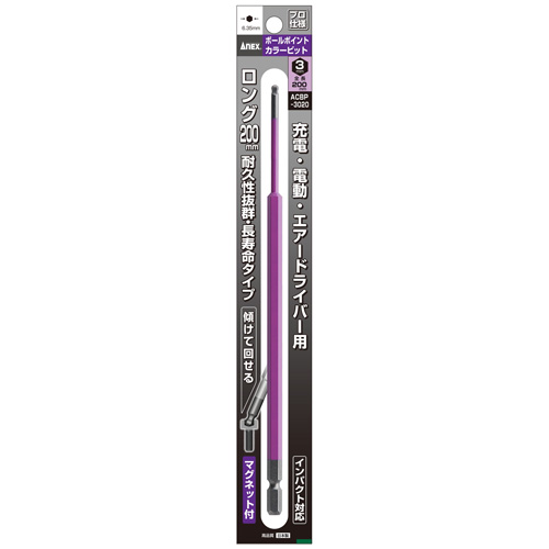 品名 : 3.0x200mm [Ball-Hexagon]ドライバービット