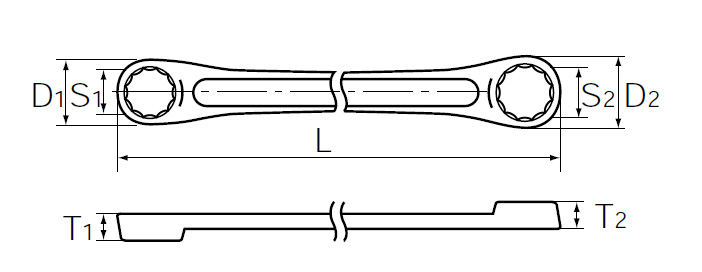 | 材質 | 工具鋼 | サイズ | S1×S2:8×10mm、D1:14mm、D2:17mm、T1:7.3mm、T2:7.6mm、L:235mm |