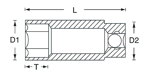 | 各部サイズ | ●全長(L;mm):64●先端部外径(D1;mm):16●差込部外径(D2;mm):17●ソケット深さ(T;mm):30 | ||