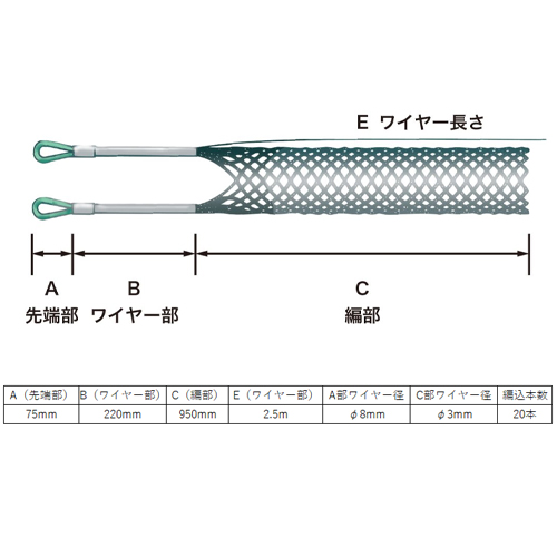 | 用途 | 各種電線ケーブルのけん引作業に | 作業引張強度 | 19.9kN(2030kgf) |