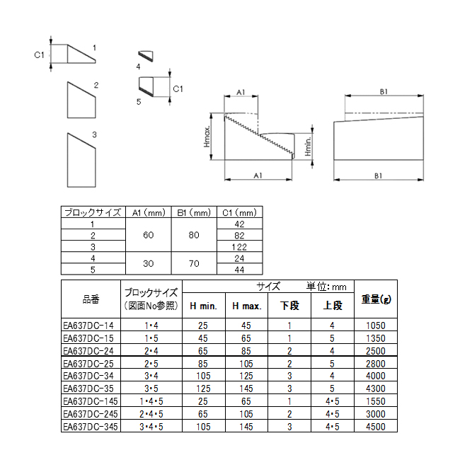 | ブロック3サイズ: A1:60mm、B1:80mm、C1:122mm |