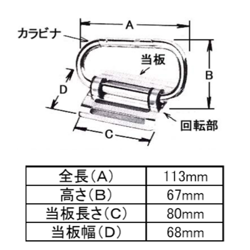 | カラビナサイズ | 67×113mm | カラビナ線径 | 10mm |