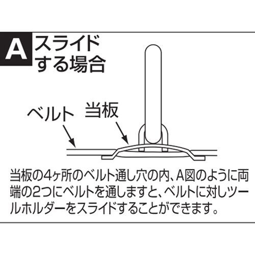 | ベルトの通し方によりツールホルダーをベルトに固定することも、スライドすることもできます。 | |||