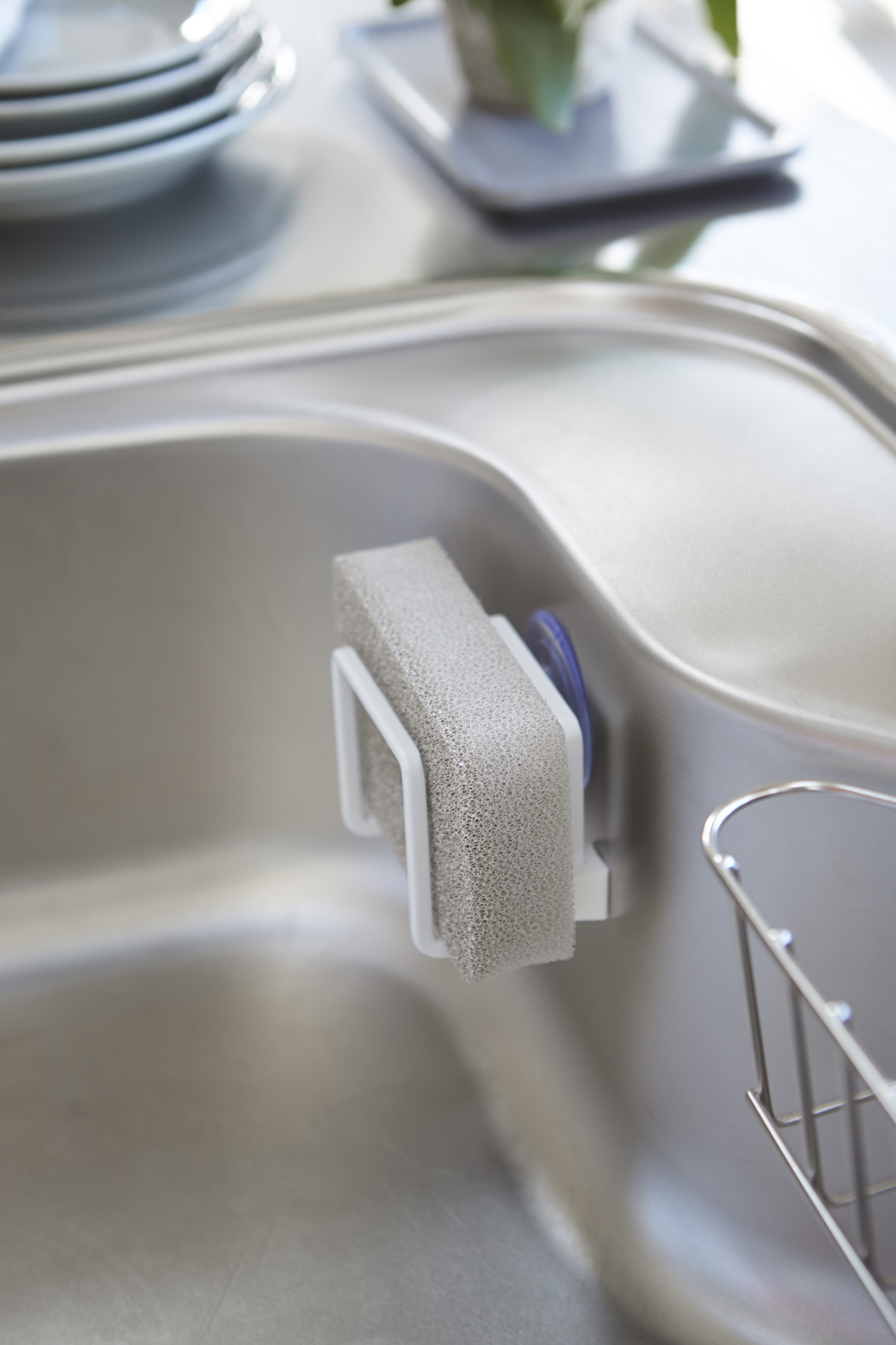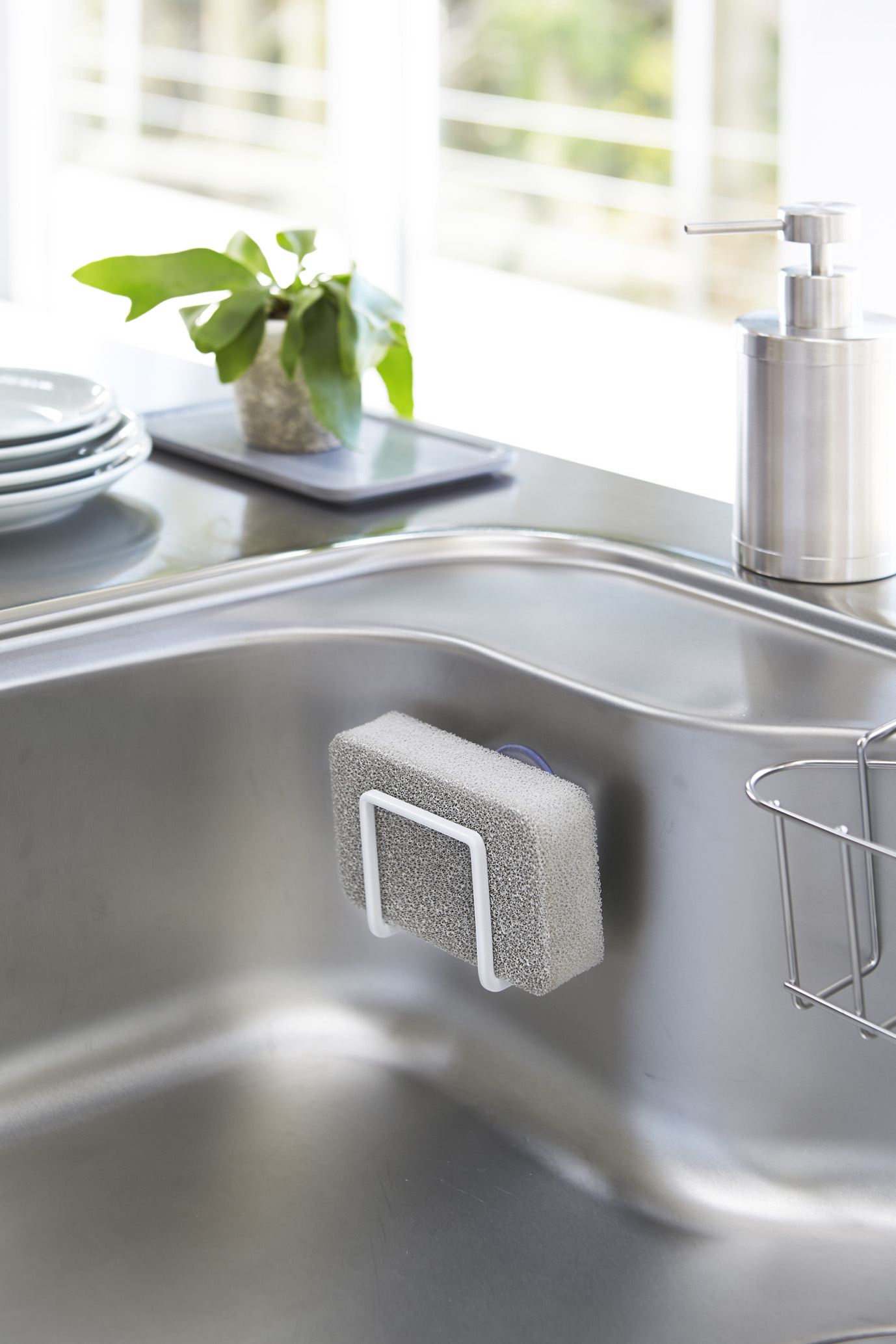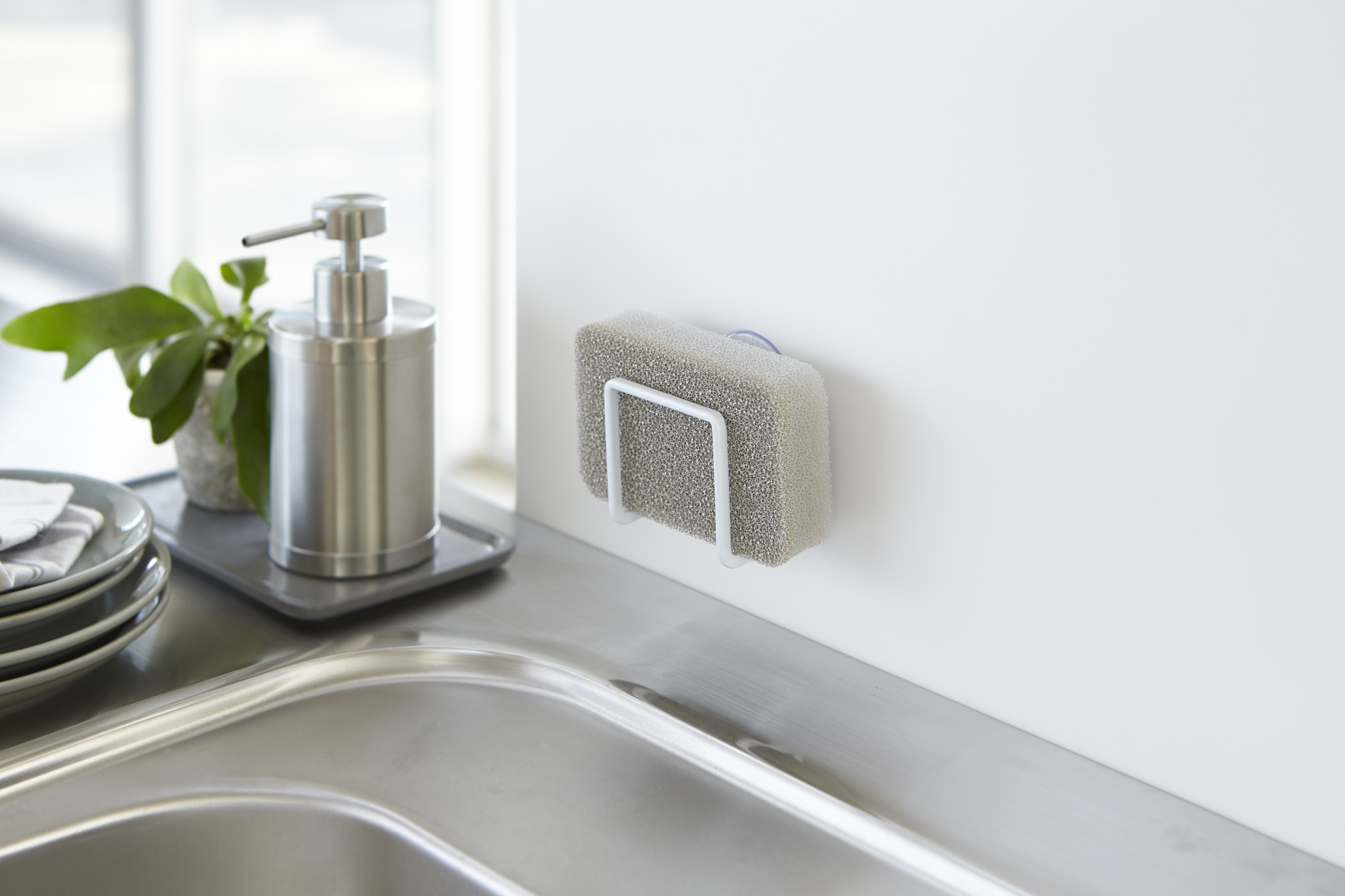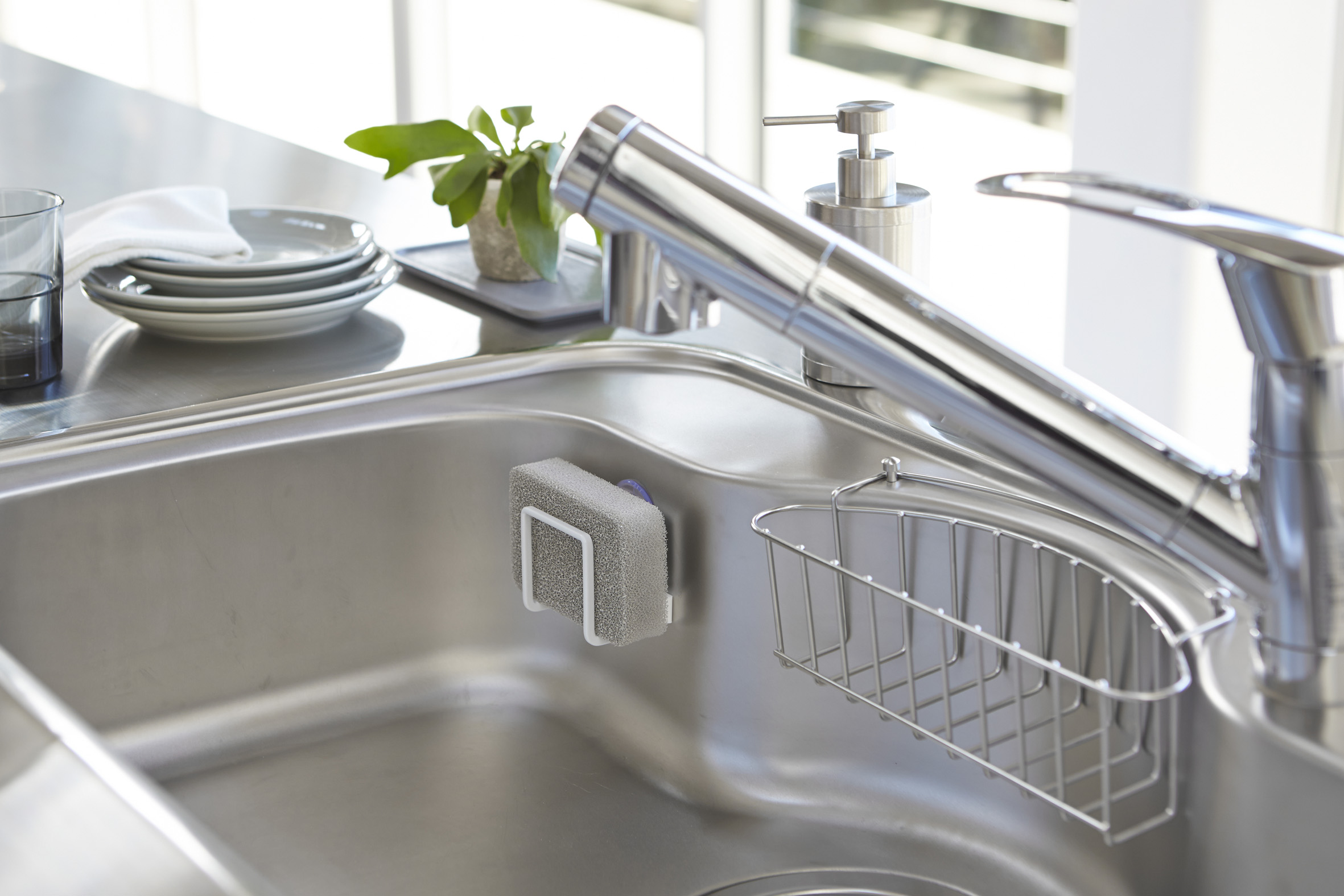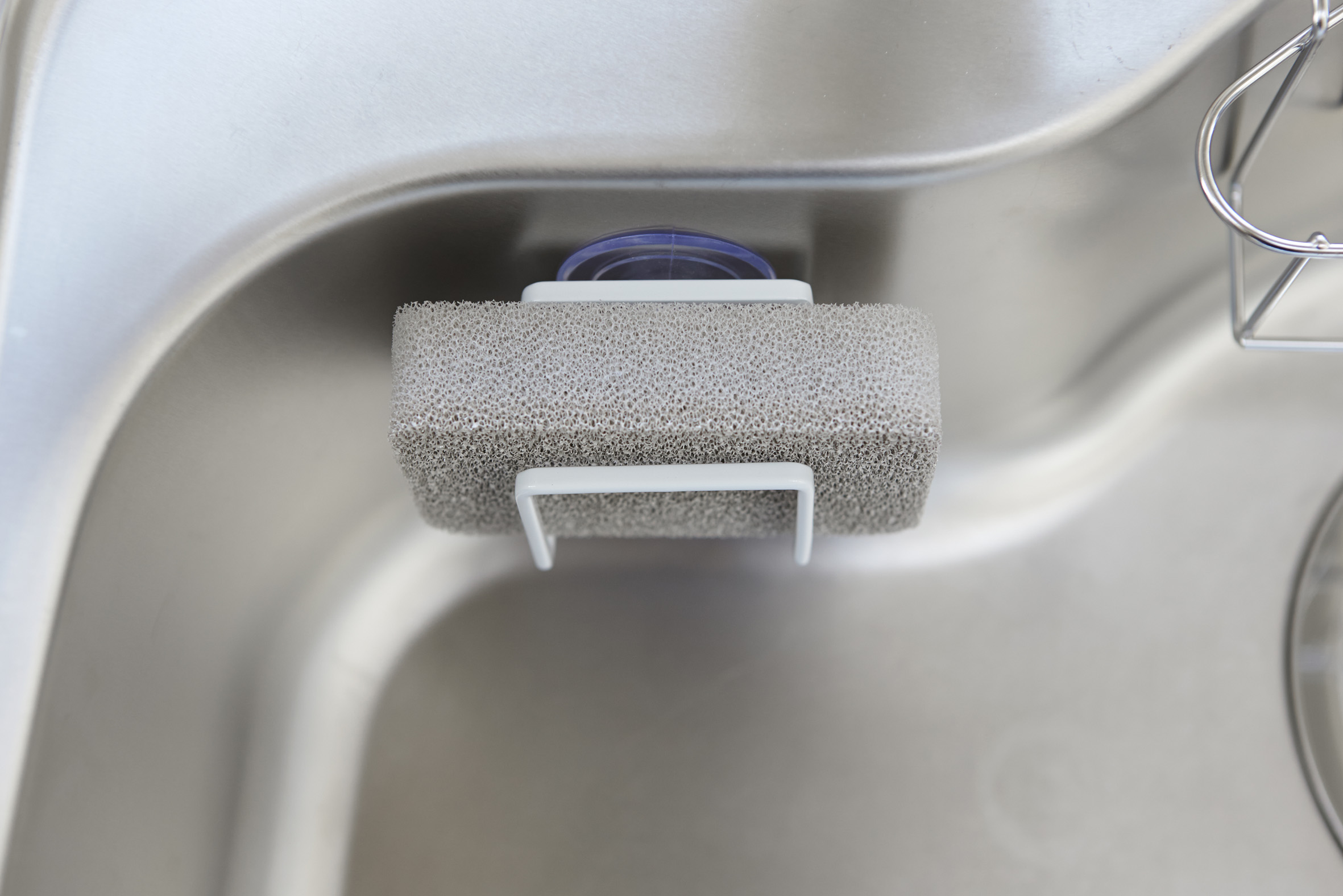 | スポンジを挟んでそのまま収納。コンパクトサイズで、シンク内のスペースを取りません。水切れのいいデザインで、いつでもスポンジを清潔に保てます。 | |||
