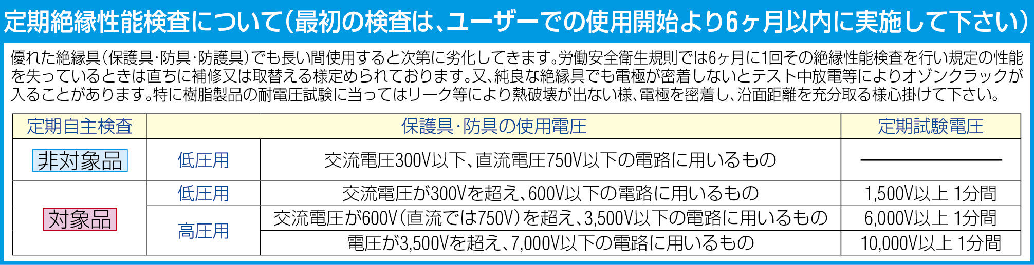 | 定期自主検査 | 対象品 | 試験電圧 | 3000V/分 |
