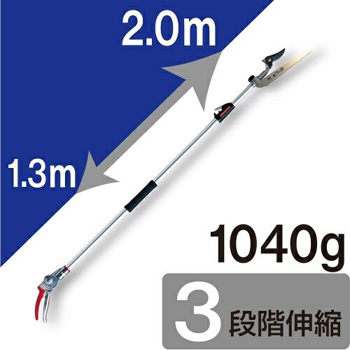 品名 : 1.3-2.0m 高枝鋏(剪定型・伸縮柄/刃長60mm)