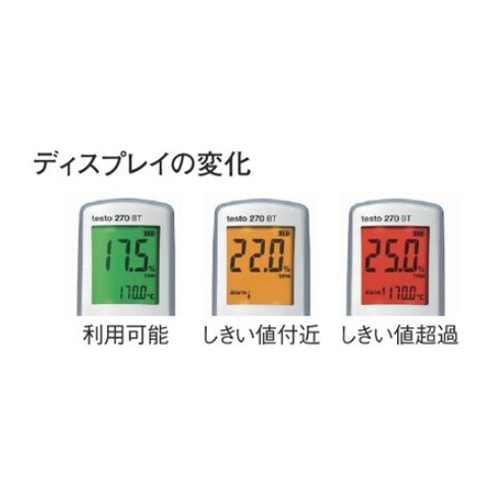 | 2段階で設定したしきい値により、ディスプレイの色が変化し、アラームを出すので見落とすこともありません。 | |||