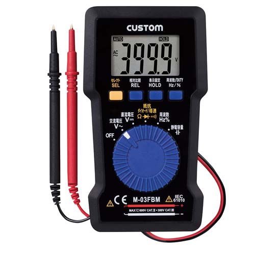 | コンパクトなボディーに電圧(直流、交流)、抵抗、周波数、静電容量、導通チェック機能(ブザー、LED)、ダイオードチェック機能を持たせた、小型軽量のデジタルマルチメータ | |||
