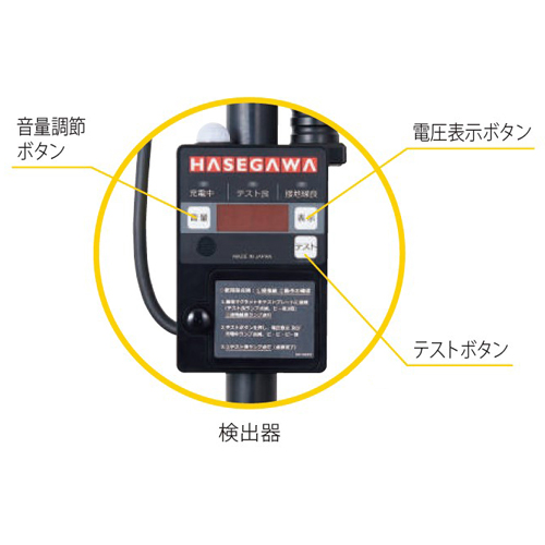 | ブザー音量調整 | 「音量」スイッチを押すたびに大→中→小→大…の繰り返し 1m離れた時点での音量 大:75dB以上、中:55~70dB、小:50dB以下 |