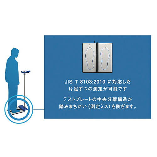 | JIS T 8103:2010に完全対応した測定が可能(片足ずつ測定) | |||