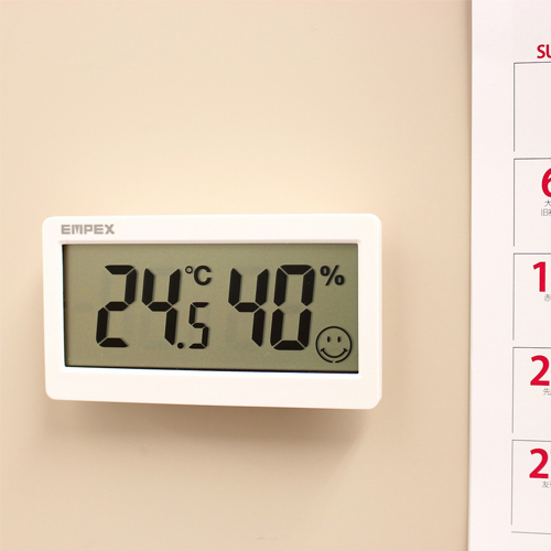 | 快適湿度範囲:40~65%RH常温をしっかりカバーする湿度計。 精度±5%RH(40~70%RH常温)湿度センサ搭載。 |