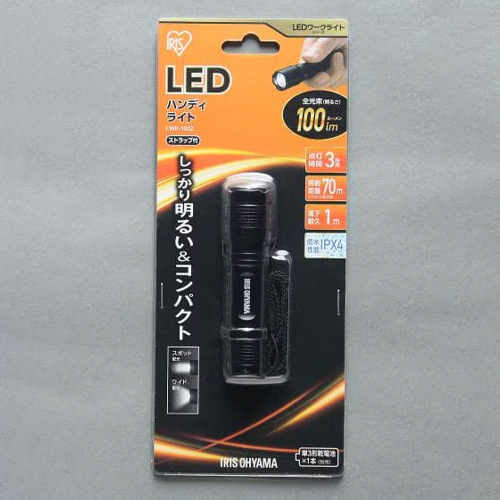 | 明るさ | 100ルーメン | 電池寿命(時間) | 3時間(全点灯時) |
