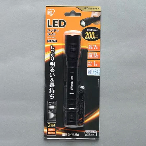 | 明るさ | 200ルーメン | 電池寿命(時間) | 7時間(全点灯時) |