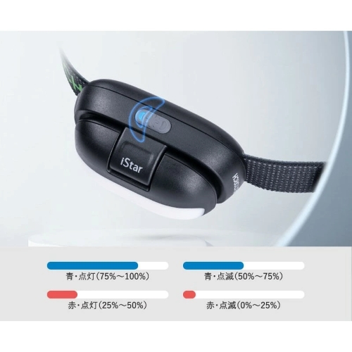 | 照射パターン | ツインビーム(前方) | 明るさ | 集光(弱~強/無段階調光):20~450ルーメン 散光(強):105ルーメン 散光(弱):14ルーメン 赤色(強):14ルーメン 赤色点滅(弱):14ルーメン |